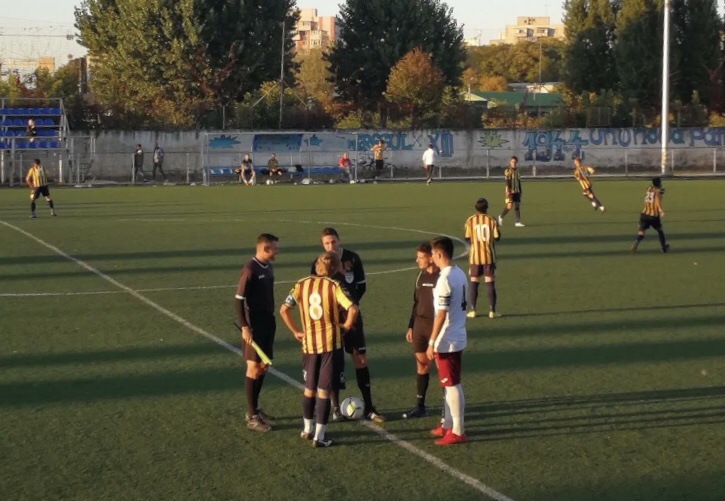 Ieri dupa amiaza, pe stadionul nostru a fost programata o partida din cadrul Ligii a V-a bucurestene, intre formatiile VK Soccer si Rapid Frumosi Nebuni ai Giulestiului. Meciul a fost intrerupt insa dupa o ora de joc, la scorul de 3-3, de catre arbitru, din cauza incidentelor din jurul terenului.