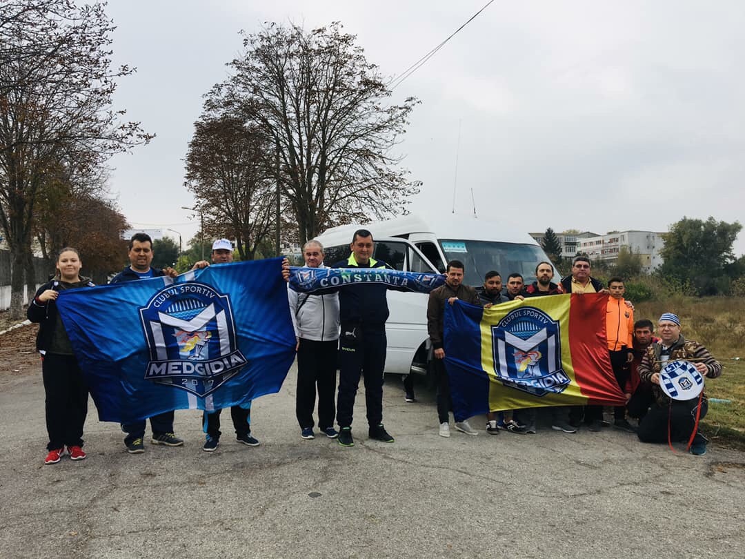 Cu cativa jucatori experimentati la nivelul ligii a treia ca Iulian Ravoiu (ex Axiopolis) sau Vasile Sicu (ex Farul), dintre care ultimul este si golgeterul echipei, CS Medgidia a evoluat bine in prima parte a campionatului, obtinand zece puncte din zece meciuri si situandu-se pe locul 11 in clasament, cu golaverajul 9-19. Interesant este ca cei din Medgidia au si o micuta dar fidela galerie, care ii insoteste si la deplasari (foto jos)! In ultima vreme, de altfel, si prestatiile formatiei au parut mai bune „afara” decat acasa, acolo unde nu s-a mai obtinut decat un punct din ultimele trei partide disputate.