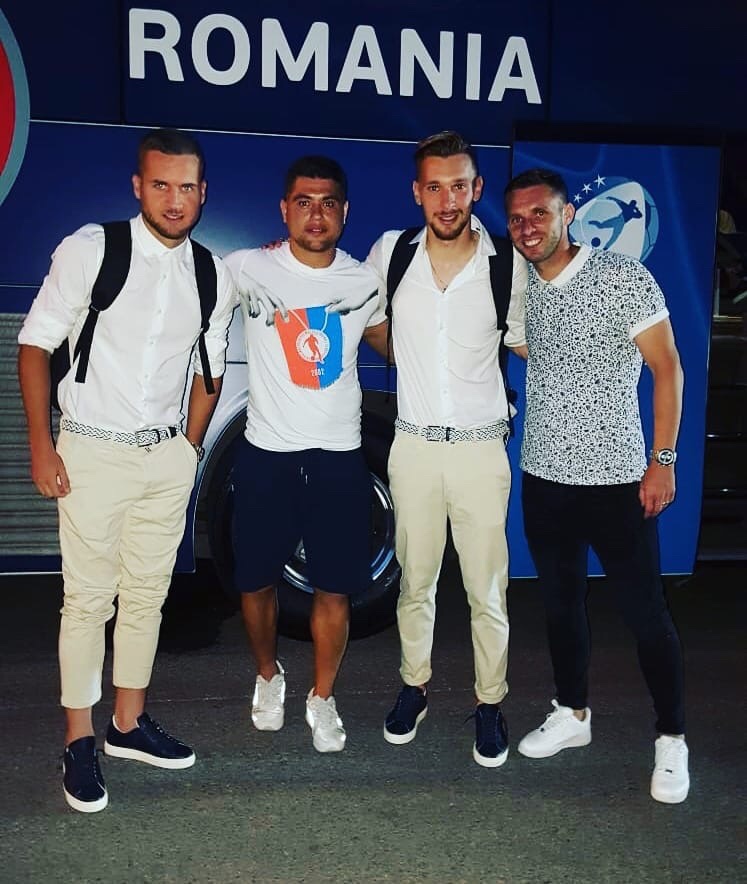 Intre miile de romani de la Cesena s-au aflat si capitanul Progresului Spartac, Ciprian Stanciu, dar si preparatorul fizic al echipei noastre, Florin Draghici sau mijlocasul Mircea Donca. Primii doi nu au ratat ocazia unei fotografii dupa joc cu doua dintre vedetele formatiei de tineret a Romaniei, George Puscas si Ionut Radu.
