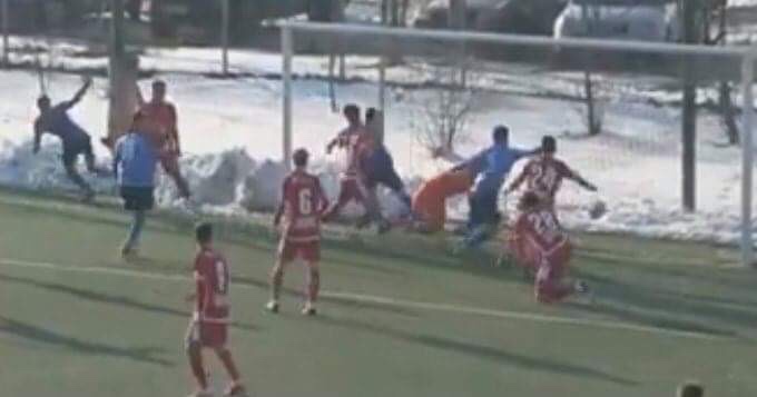 Dupa ce am revazut secventa de mai multe ori cu incetinitorul, putem sa o explicam in detaliu. Centrarea a fost respinsa defectuos de un dinamovist pana la S. Matei, care, de la 6 m, lateral, a trimis cu capul spre poarta. Portarul Chioveanu a respins, dar mingea s-a lovit de un fundas dinamovist aflat in fata lui (Tone) si a ricosat spre poarta. Cu un nou reflex, Chioveanu a impins-o cu varful degetelor in lateral din fata lui M. Ion, dar numai pana la Parfeon care, de la 10-20 de centimetri de linie, a trimis-o in plasa.