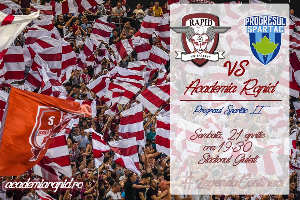 Partida de fotbal de liga a patra dintre Academia Rapid si echipa secunda a Progresului Spartac se desfasoara sambata de la ora 19.30 pe stadionul Giulesti. Meciul va fi transmis in direct pe postul Telekom Sport 3.